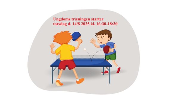 Vi starter træningen efter sommerferien torsdag d. 14/8 2025 kl. 16:30 – 18:30. Herefter vil træningen for ungdom være tirsdage og torsdage kl. 16:30 – 18:30. Træneren er som tidligere år – vores dygtige og populære træner Anja.