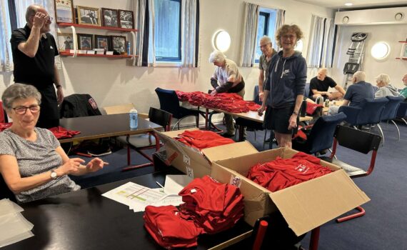 Så kom Jubilæumstrøjerne i dag, og 60+ afdelingen fik sorteret dem til de unge, seniorer og Bat60, og de første blev delt ud til Bat60 her til formiddag